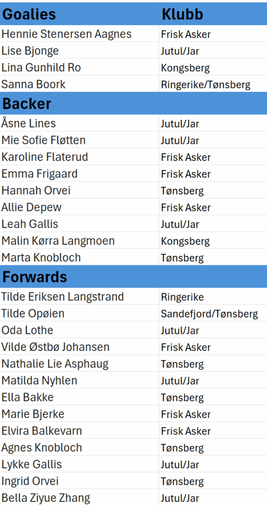 Vi har endelig gleden av å dele årets uttak av jenter som skal delta i region turneringen som skal spilles i Trondheim 10.-12. april 2026.